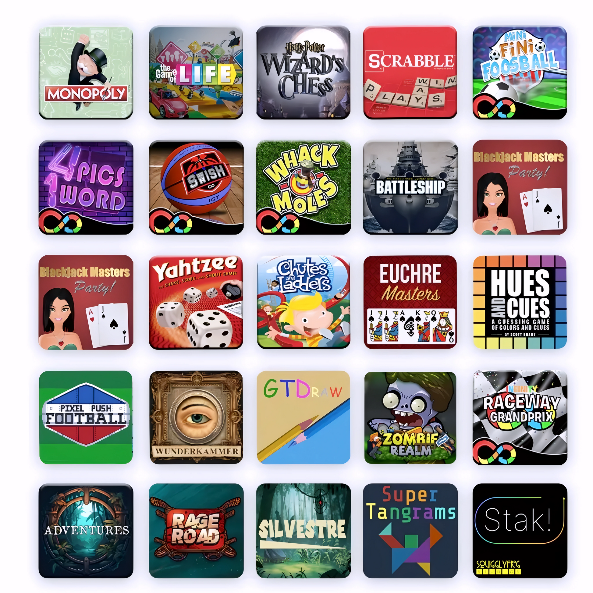 Genieße digitale Versionen klassischer Brettspiele – Monopoly™, Scrabble™ und mehr.